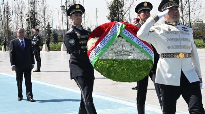 Президенти Ҷумҳурии Тоҷикистон Эмомалӣ Раҳмон дар назди Муҷассамаи «Истиқлолият ва башардӯстӣ»-и Ҷумҳурии Узбекистон гулчанбар гузоштанд
