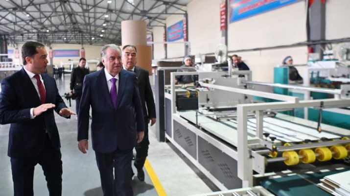 Президенти Ҷумҳурии Тоҷикистон Эмомалӣ Раҳмон дар ноҳияи Бобоҷон Ғафуров ба раванди истеҳсолот дар корхонаи қуттиҳои картонӣ оғоз бахшиданд