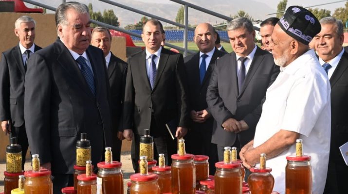 Президенти кишвар муҳтарам Эмомалӣ Раҳмон нахуст дар ноҳияи Файзобод аз намоиши маҳсулоти кишоварзӣ, аз ҷумла сабзавот, анвои гуногуни меваҳои тару хушк, маҳсулоти консервашуда, полезӣ ва ғалладонагию лӯбиёгиҳо, ки дар кишти тирамоҳию баҳорӣ ва такрорӣ бо истифода аз обу ҳавои мусоид, замини ҳосилхез ва тухмиҳои хушсифат ба даст омадаанд, дидан намуданд.
